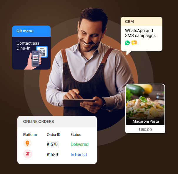 Cook your restaurant's success with holistic restaurant management software, complete with inventory, production, CRM, food aggregator, franchise management, and much more!